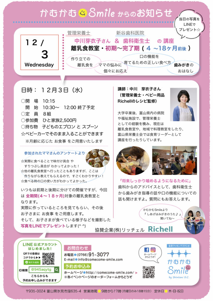 離乳食教室・初期〜完了期 ( 4~18ヶ月前後のお子さん )